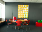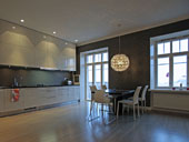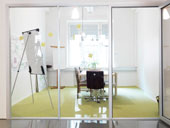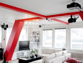 Neuvotelutilan punainen ristikotelointi, seinien saneeraus
